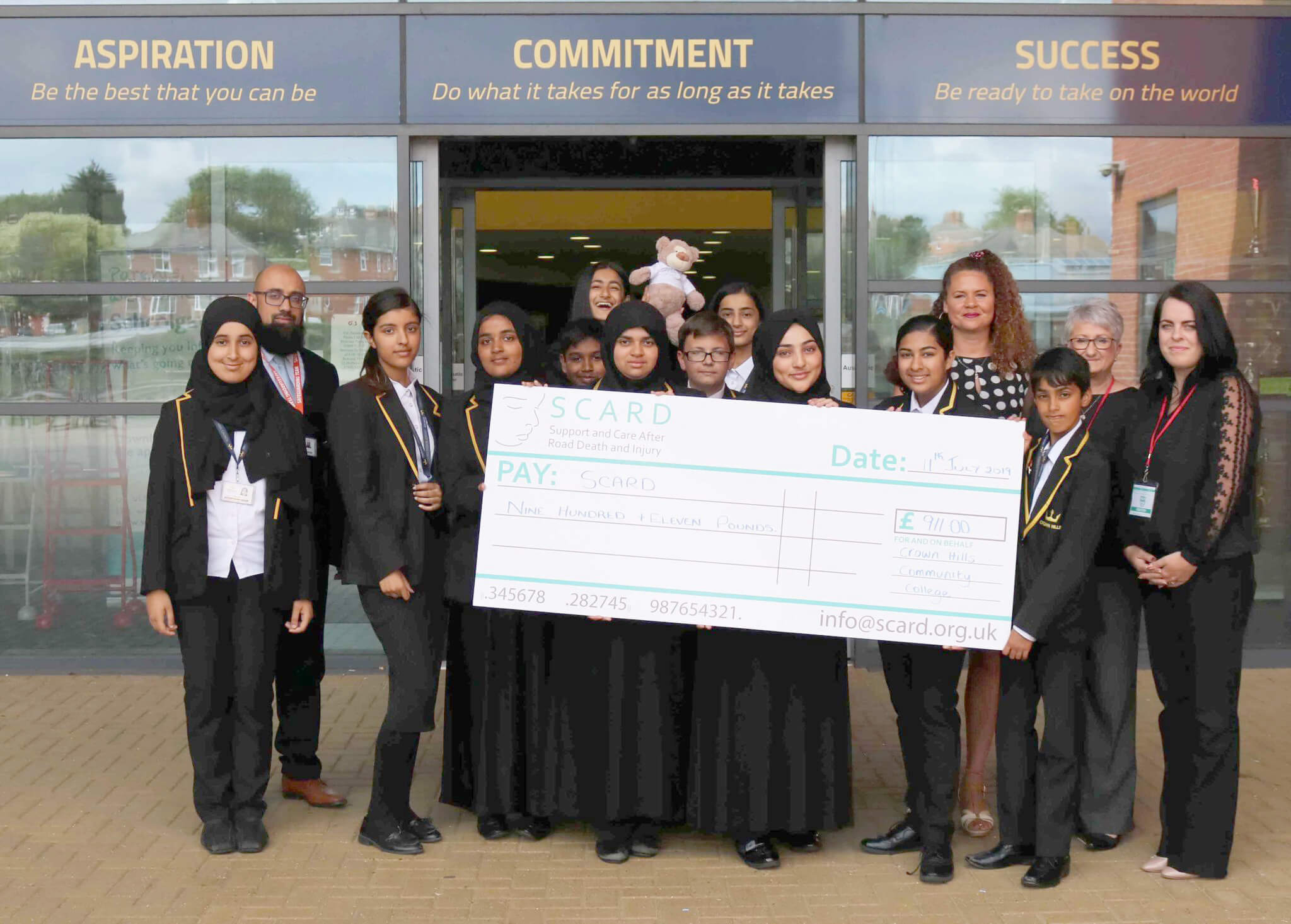 LCC Crown Hills Community College college in Leicester decided to raise money for SCARD by having a non-uniform day. One of their teachers had lost her brother in a road traffic collision so they really want to do something to raise funds and awareness. Zoe and Anne from SCARD had the privilege of going to meet the group of children who worked really hard on the event and raising the amazing amount they did. They are a lovely group of children.